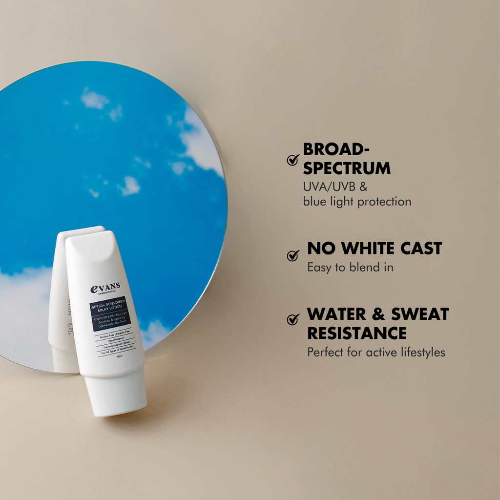 Lightweight, milky sunscreen lotion with SPF 50+ for Asian skin, and all types of sensitive skin.