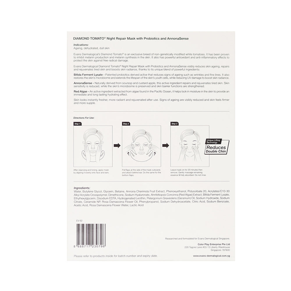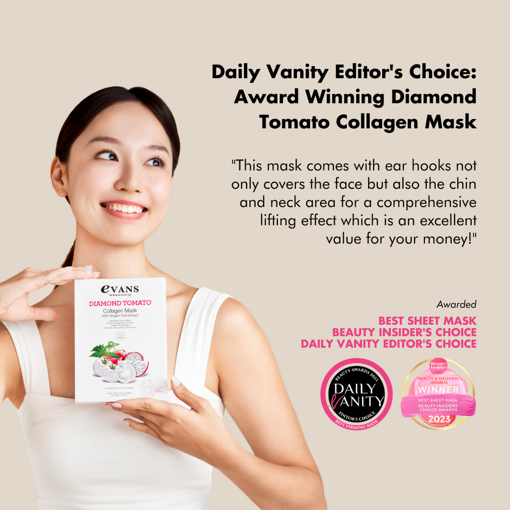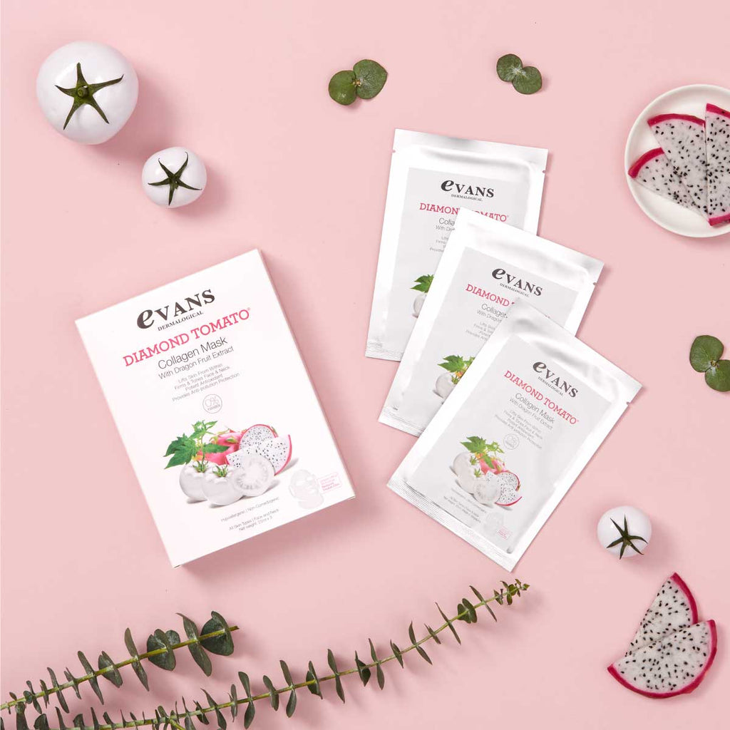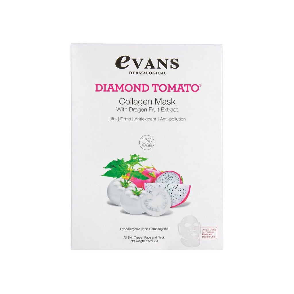 Evans Dermalogical Diamond Tomato Collagen Mask is an award-winning anti-aging mask that helps to firm and lift the skin, thanks to its unique lifting technology and active ingredients.