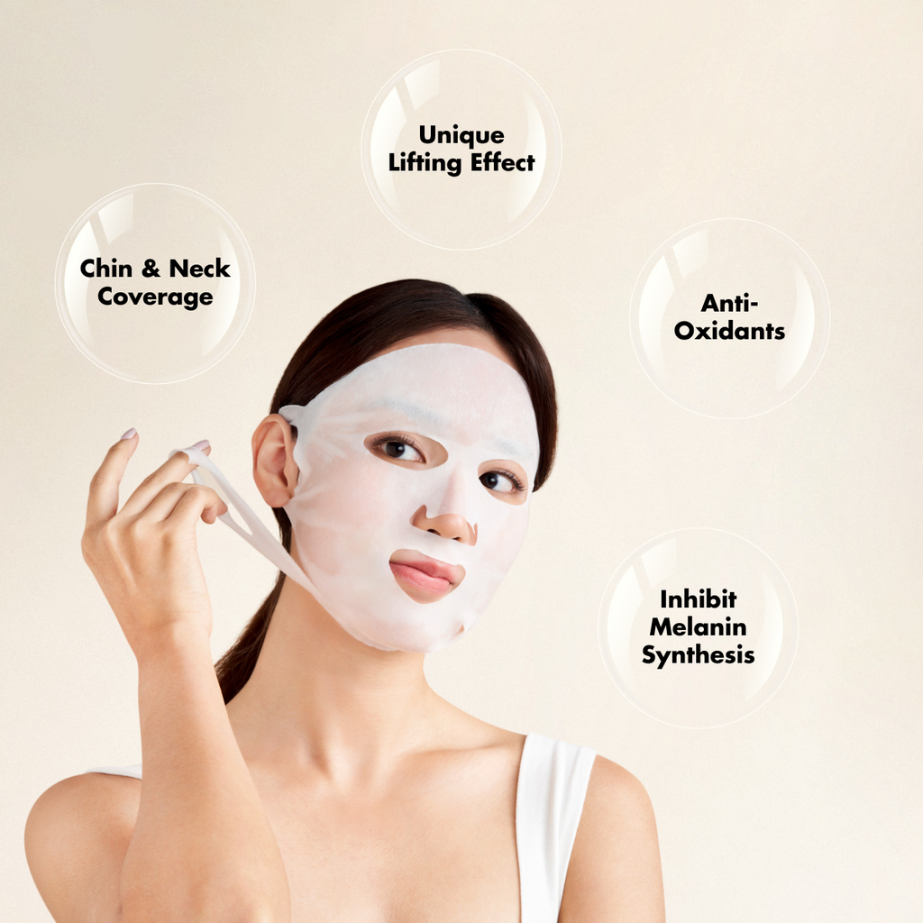 Made from a high quality, stretchy material, this 2-in-1 mask covers face, chin and neck. It comes with double ear hooks that not only secures the mask in place for better serum absorption, but also gives a great lifting effect that helps to firm up saggy skin on the chin and neck.