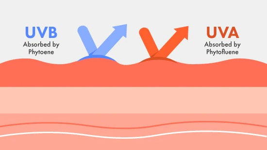 UVA rays, responsible for skin aging and wrinkles, are absorbed by Phytofluene. UVB rays are absorbed by Phytoene. Together, these colourless carotenoids offer complete protection against both UVA and UVB rays.