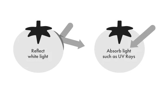White tomatoes reflect visible white light instead of absorbing it from the visible spectrum. Colourless carotenoids in white tomatoes absorb light from lower wavelengths like UV rays. They provide effective protection against harmful UV radiation.