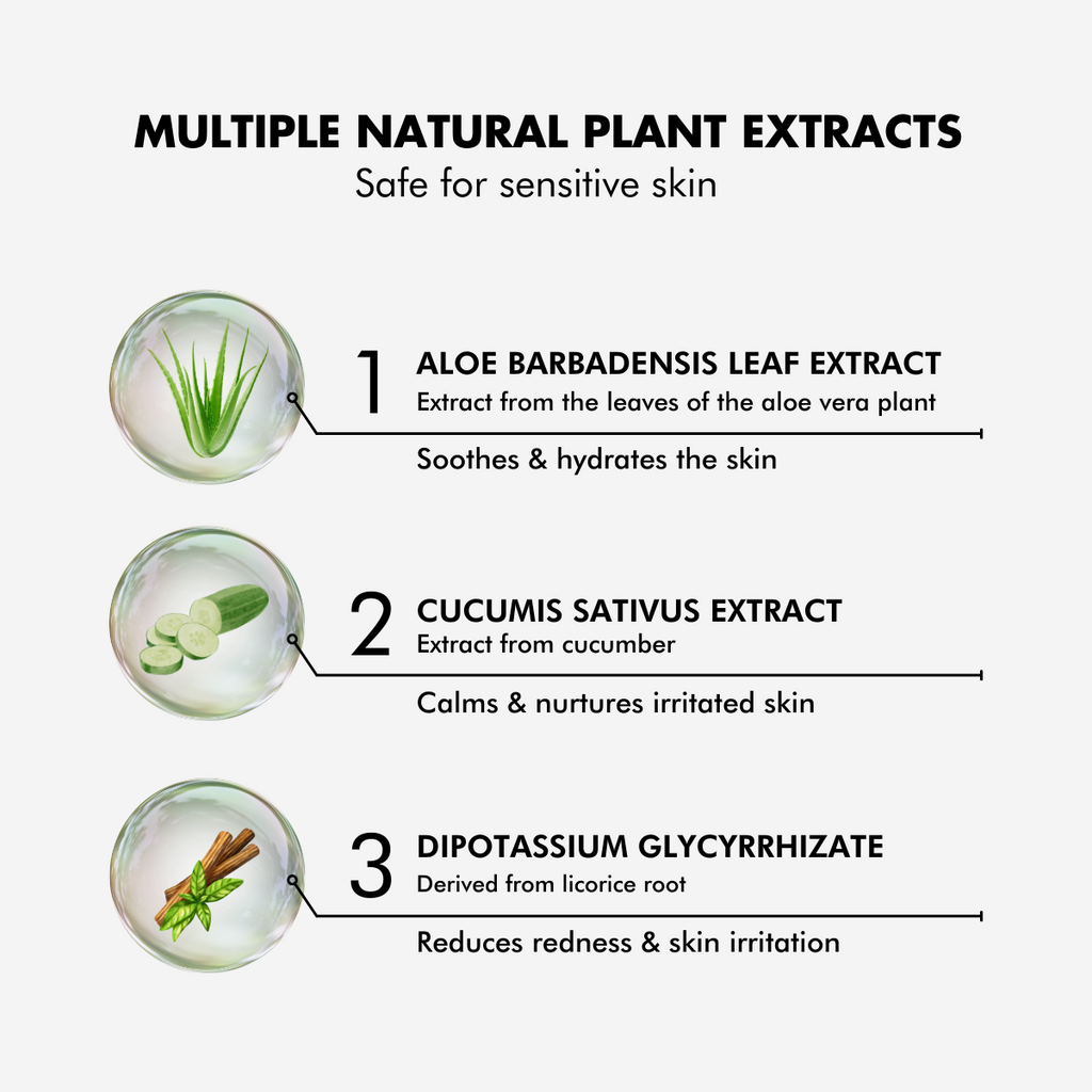 2) Cucumber extract: Calms and nurtures irritated skin.